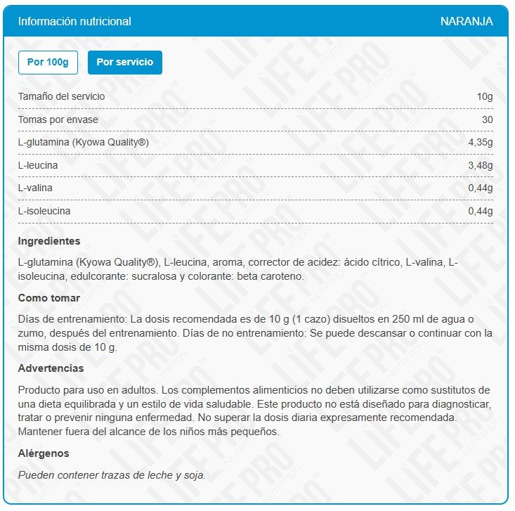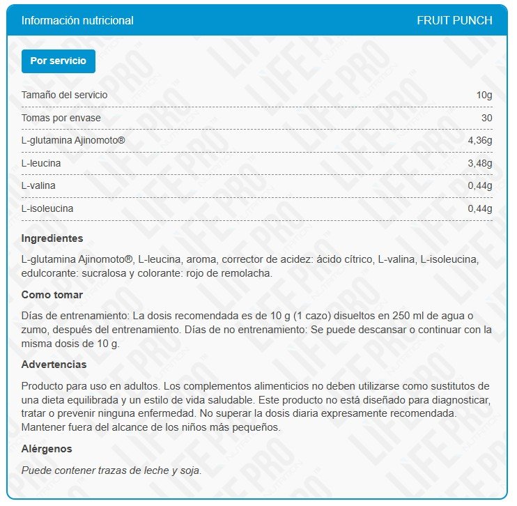 Sé el primero en valorar “Life Pro Bcaa + Glutamina 300g de LifePro”
