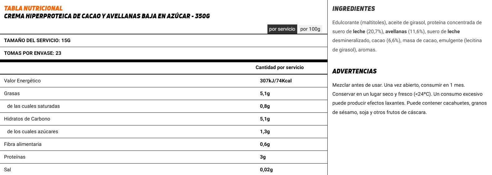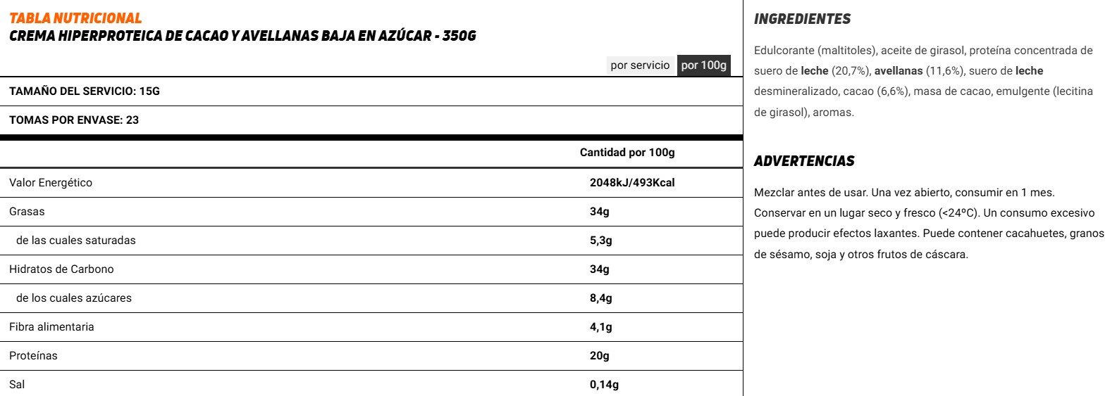 Crema Hiperproteica de Cacao Y Avellanas Baja en Azúcar de HSN