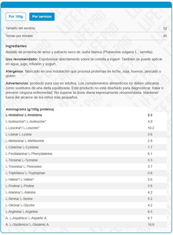 -Life Pro Carb Stop ha sido enriquecido con proteína de arroz.