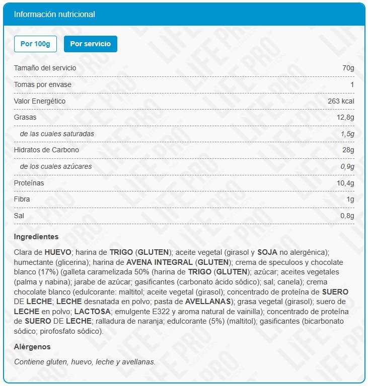 A diferencia de los bagels convencionales, el bagel de Life Pro, destaca por su bajo contenido en calorías; cada unidad aporta 263 calorías. Es ideal para dietas tanto de pérdida de grasa como de ganancia de masa muscular.