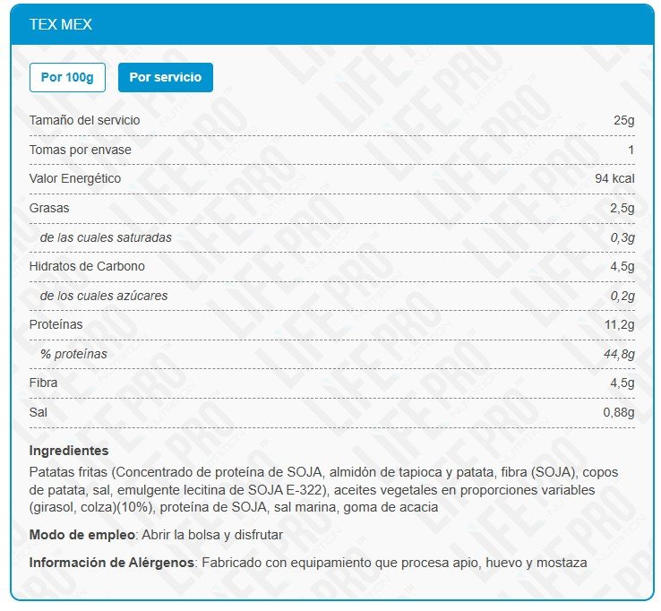 Life Pro Protein Nachos son los nuevos chips de tortilla saludables que destacan por su composición mejorada y su alto contenido en proteína. Están elaborados con patata y enriquecidos con proteína de soja, y dependiendo del sabor seleccionado, también contienen proteína de leche. Con un impresionante 44,8% de proteína, cada porción te proporciona 11,2 gramos de proteína de alta calidad.