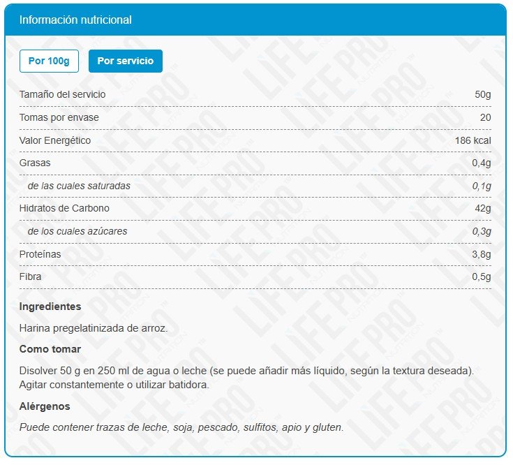 -Su digestión y absorción es mucho más rápida que otro tipo de harinas de arroz convencionales.