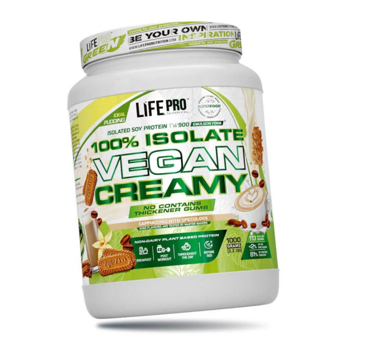 Isolate Vegan Creamy ha sido formulada y diseñado por Life Pro, con el objetivo de ofrecer una proteína de origen vegetal, elaborada únicamente aislado de soja, sin mezcla de otro tipo de proteínas.