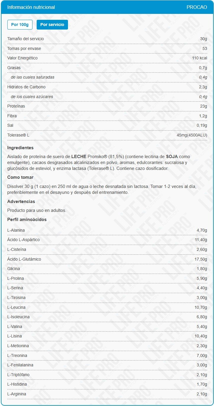 Life Pro Isolate Zero es el mejor aislado de proteína de la marca. Con 87% de concentración proteica, es bajo en grasas y carbohidratos, por lo que te ayudará con tu rendimiento deportivo sin influir negativamente en tu dieta.