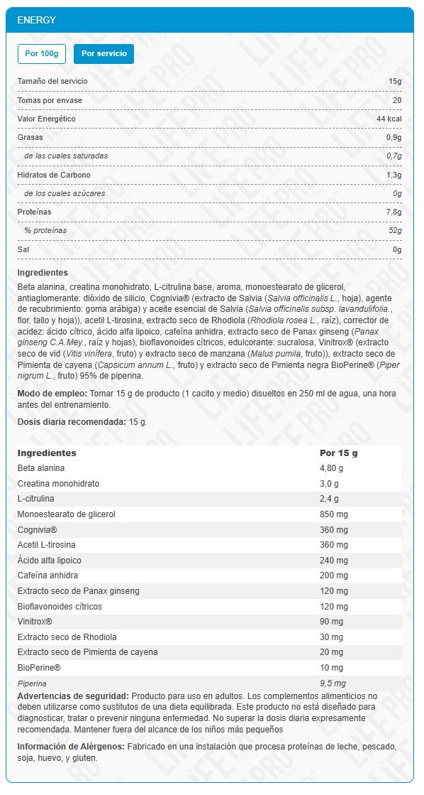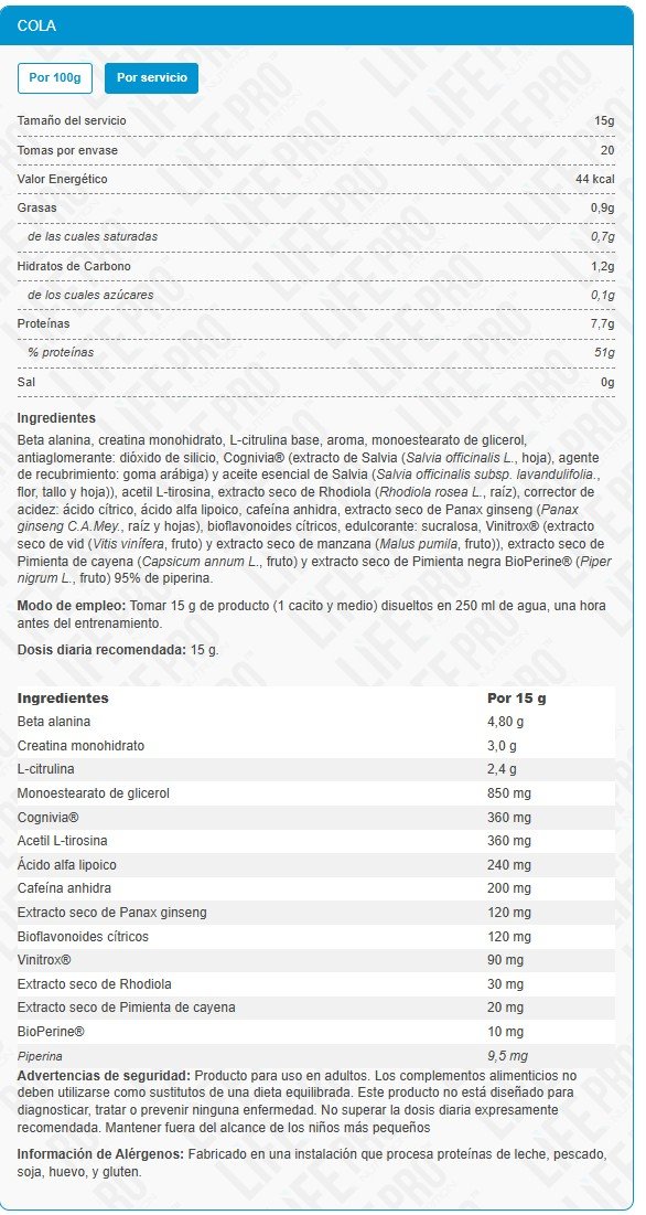 Combina compuestos diferentes, todos enfocados en incrementar el rendimiento.