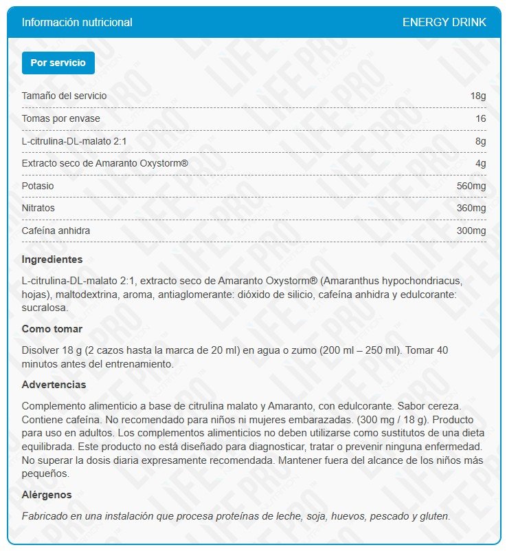 Life Pro Rage Pro es un nuevo suplemento pre entreno que ha sido formulado con Extracto de Amaranto Oxystorm y Citrulina Malato.