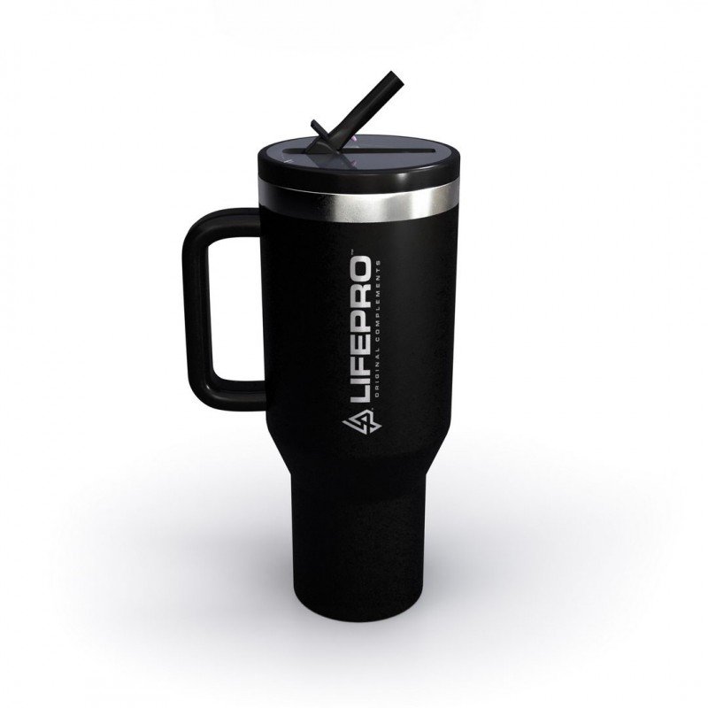 Disfruta de tus bebidas favoritas en cualquier lugar y momento con el LIFE PRO Travel Mug Black 1.2L.