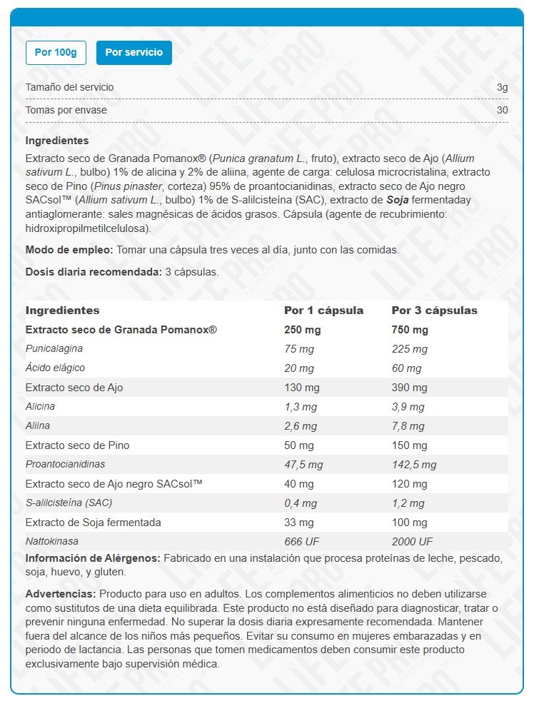 Tomar 3 capsulas al día, una con cada comida principal. En caso de recibir algún tipo de medicación consulte con un profesional sanitario su compatibilidad.