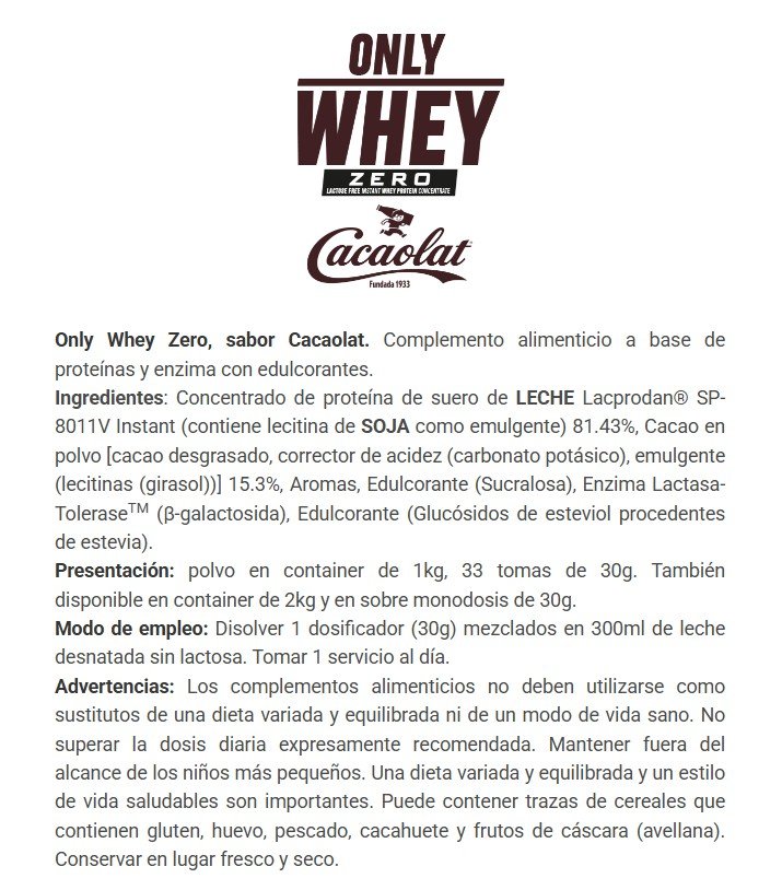 ONLY WHEY ZERO, la nueva proteína de concentrado de suero sin lactosa de BIG®, está elaborada con materias primas de la más alta calidad y con grado farmacéutico, consiguiendo un nivel de excelencia en cada uno de sus componentes.