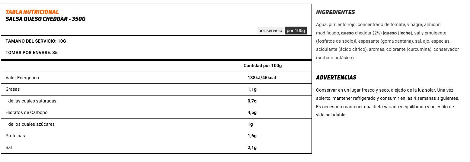 •  Salsa fitness con auténtico queso cheddar.