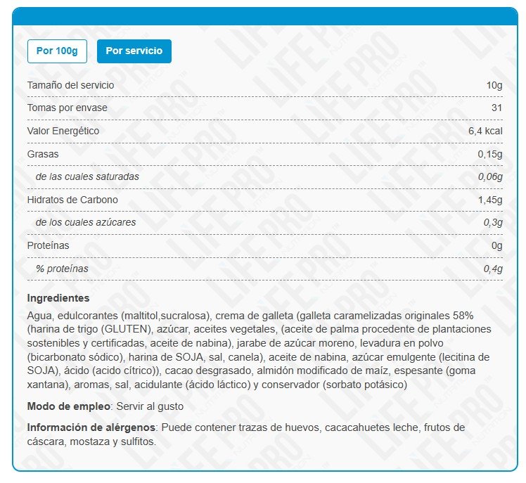 Condiciones de conservación Sirope Chocolate Blanco