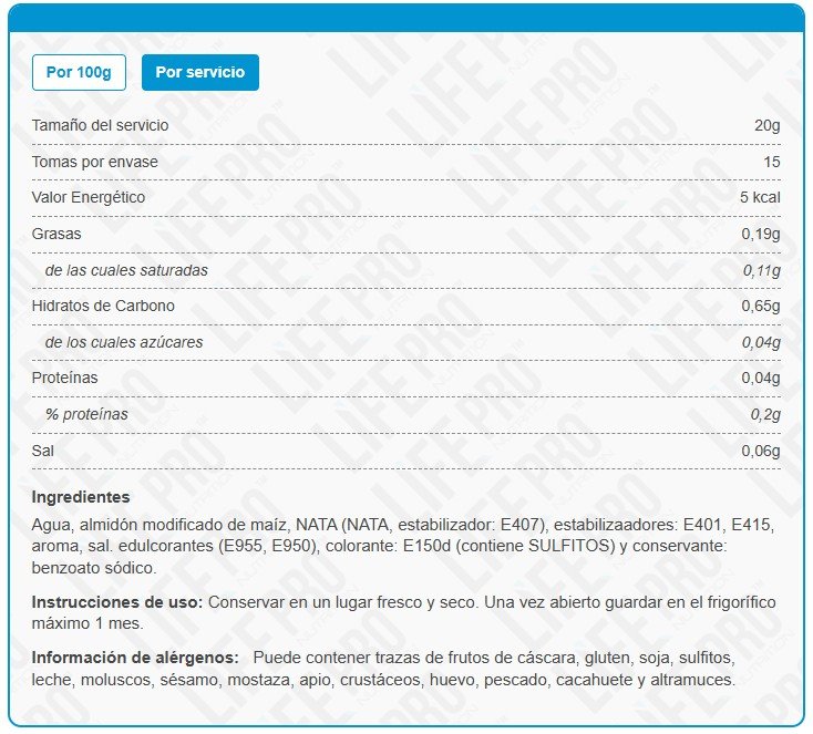 Instrucciones de almacenamiento: Conservar en un lugar fresco y seco. Una vez abierto, mantener refrigerado y consumir antes de un mes.