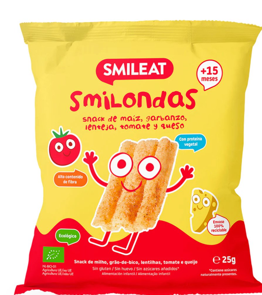 Harina de garbanzos* (32,5%), harina de maíz* (32,5%), harina de lentejas rojas* (16,2%), aceite de oliva virgen extra* (10%), tomate en polvo* (3%), queso en polvo (3%) [queso cheddar (leche), leche desnatada en polvo]*, zanahoria en polvo*, albahaca molida*, ajo en polvo*, cebolla en polvo*, orégano molido*, vitamina B1.
