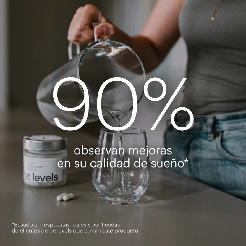 Tomar 2 cápsulas de Triple Magnesium Be Levels al día. Para deportistas, ayuno intermitente o dietas bajas en carbohidratos tomar 3 cápsulas al día. Se recomienda tomar antes de dormir, para optimizar el descanso nocturno.