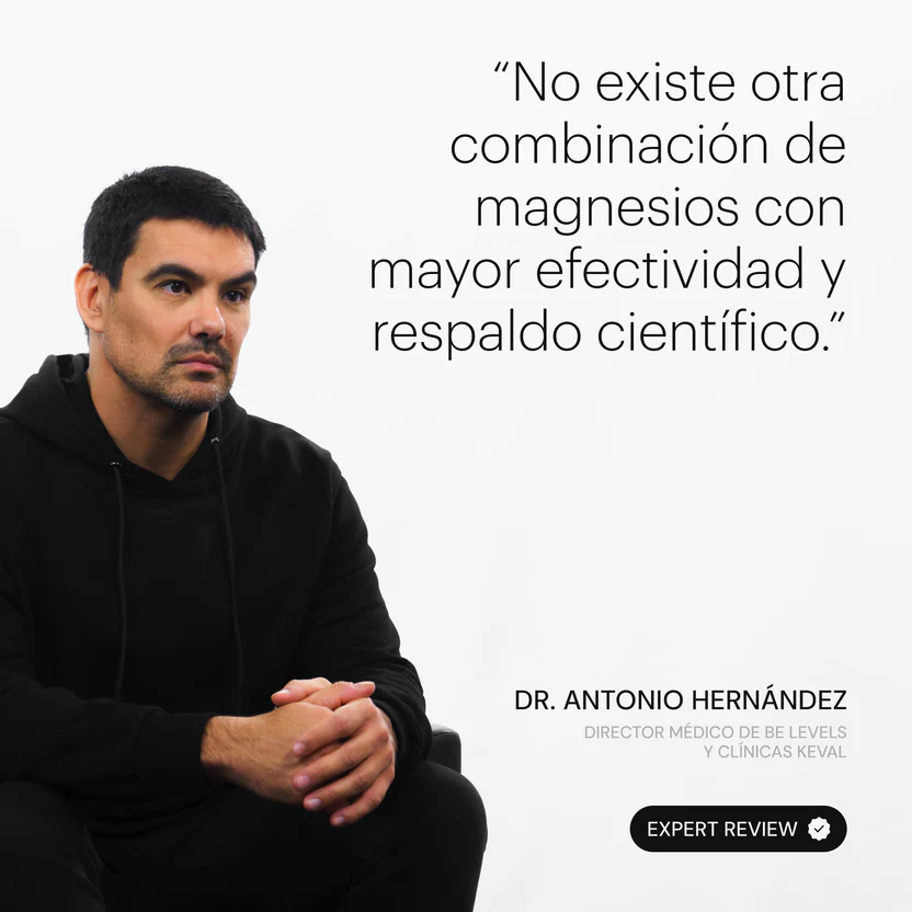 Triple Magnesium de Be Levels es un complejo avanzado de magnesio que combina tres formas orgánicas patentadas de alta absorción. Ayuda a reducir la fatiga y el cansancio, mejora la recuperación y el descanso, y favorece el buen funcionamiento del sistema nervioso, cardiovascular y cerebral.
